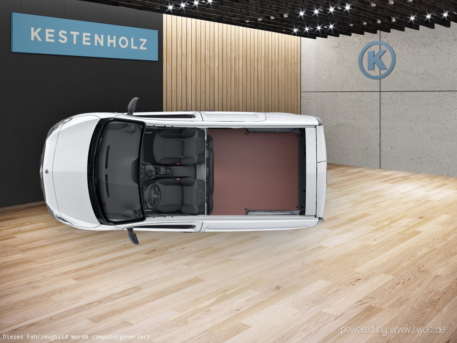 Interieur: Ablage über Frontscheibe, Armlehne mit Staufach, Beifahrersitz, Boden und Seitenwandverkleidung Holz, Fahrersitz, Fensterheber vorn elektrisch, Handschuhfach, Beifahrerseite, geschlossen, Holzfußboden, Innenverkleidung Basis, Innenverkleidung Laderaum bis Dachhöhe (Holz),