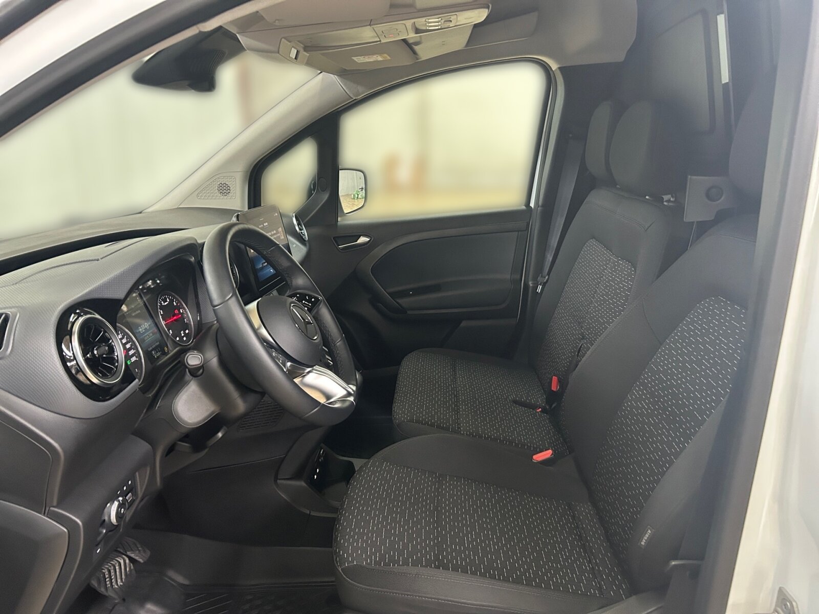 Lederlenkrad: Linkslenker, Mittelarmlehne und Türfelder schwarz genarbt, Ohne Ambientenbeleuchtung, Ohne beheiztes Lenkrad, Ohne Belüftungsdüsen im Fond, Ohne Fenster SW/LST m. Fensterheber elektr., Ohne Innenraumspiegel, Ohne Innenspiegel, Ohne Lastschutznetz, Ohne Rücksitzbank, Ohne Sitze in Reihe 3, Ohne Sitzheizung vorn, Ohne Sitz in Reihe 2, Ohne Sitz Mittelgurt Fond, Ohne Staufach zwischen F- u. BF-Sitz, Ohne Tasche an Fahrer- und Beifahrerrückenlehne, Ohne Warmluftkanal zum Fahrgastraum, Ohne Zierelemente, Schaltknauf Leder, Sitzbezugsart Stoff, Spiegel in Fahrer-Sonnenblende, Stoff Caluma schwarz, Tachometer km/h,