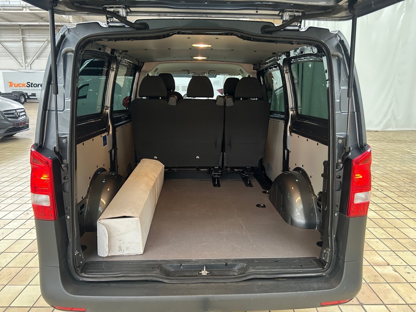 Baureihe C447 Vito/V-Klasse: CO2-optimierte Bremsanlage, Fenster in Heckklappe mit Wisch- und Waschanlage, Fenster vorn links, fest in Seitenwand/Schiebetür,