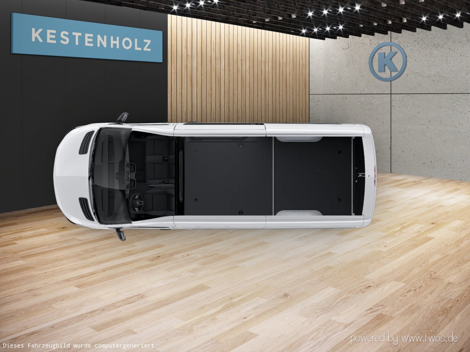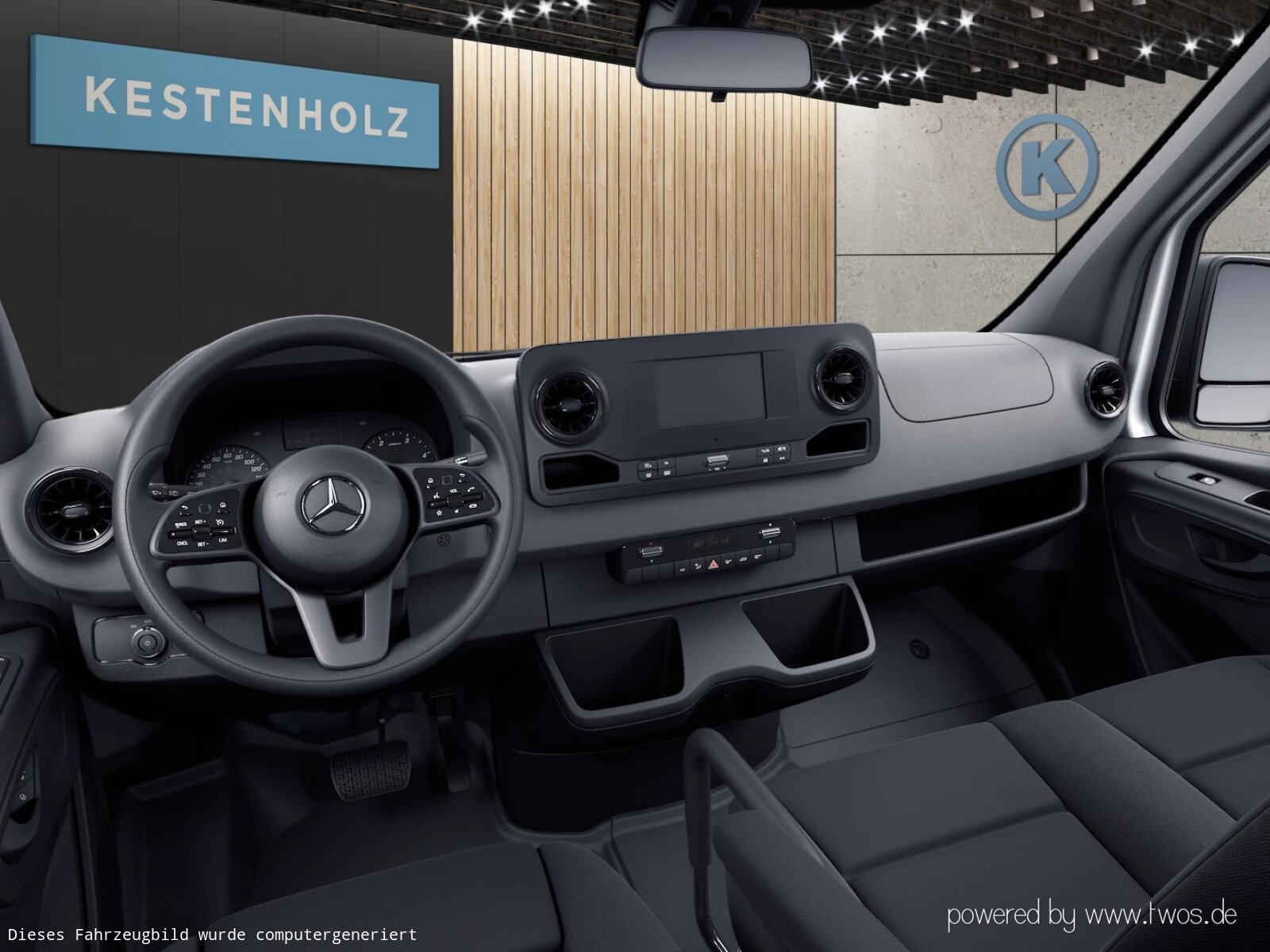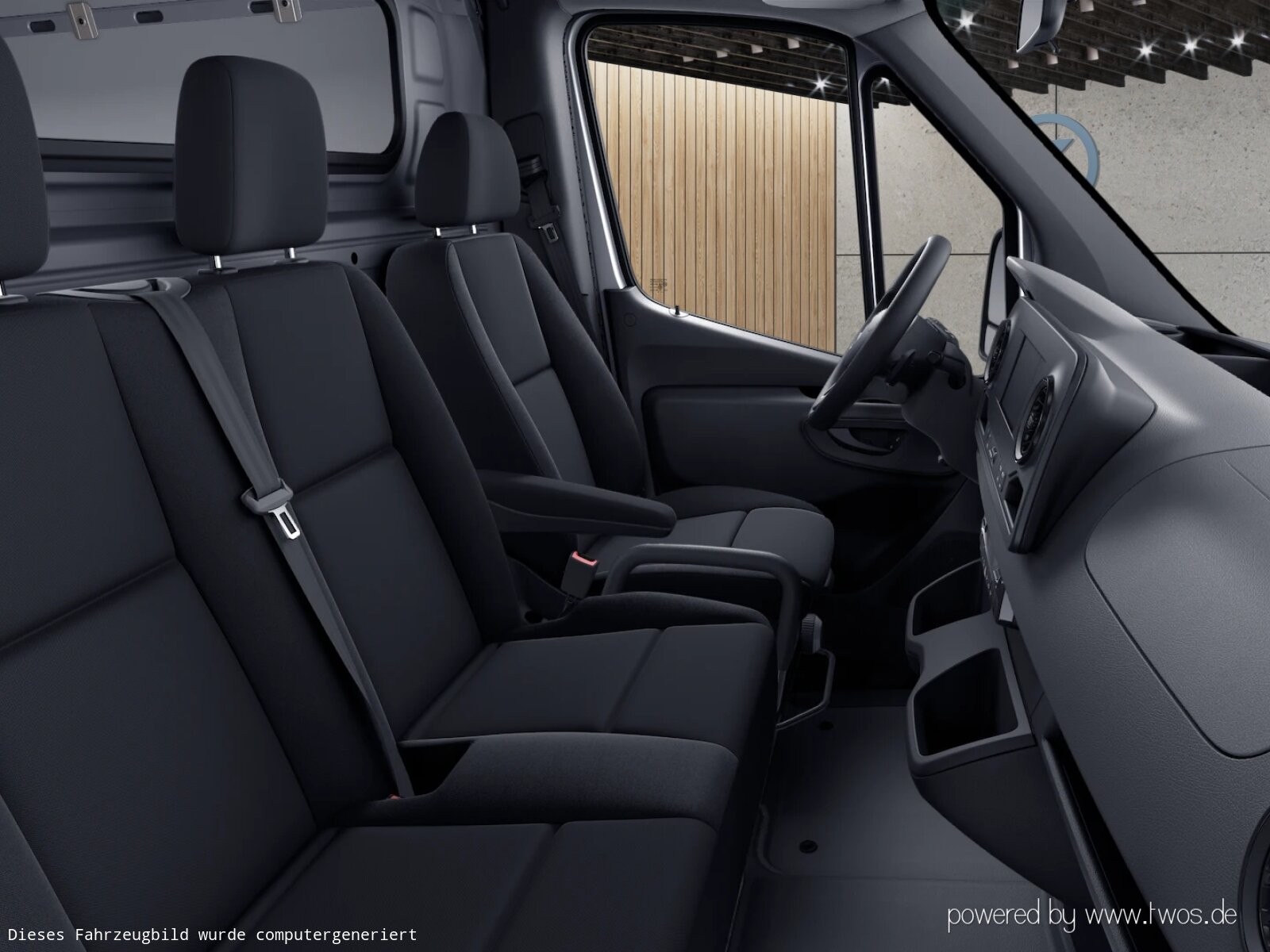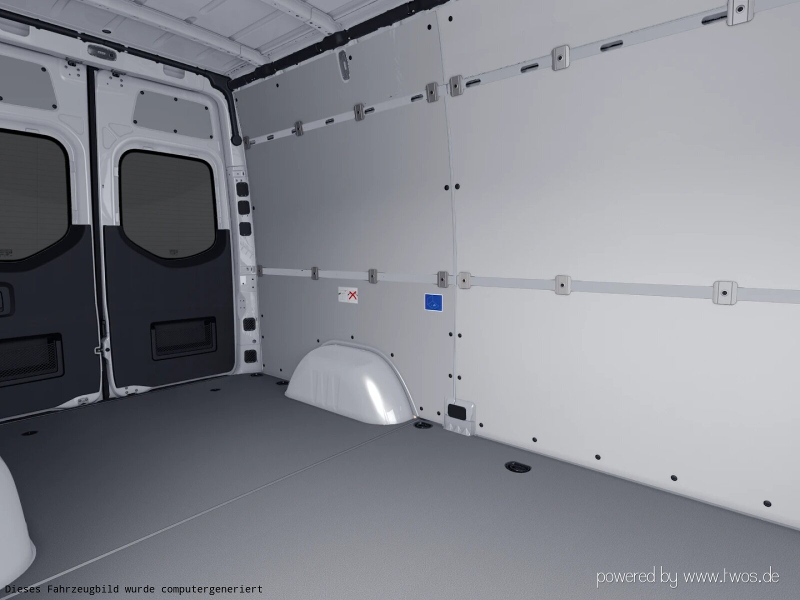 Beifahrersitz Zweisitzer: Deckenleuchte(n) LD-/FG-Raum mit Türkontakt, ECE-Ausführung, Einstieggriff an Ecksäule hinten rechts, Fahrersitzkasten, niedrig, Haltegriff für Innensitz bei Zweisitzer, Holzfußboden, Leitungskanal an Seitenwand, Linkslenker,