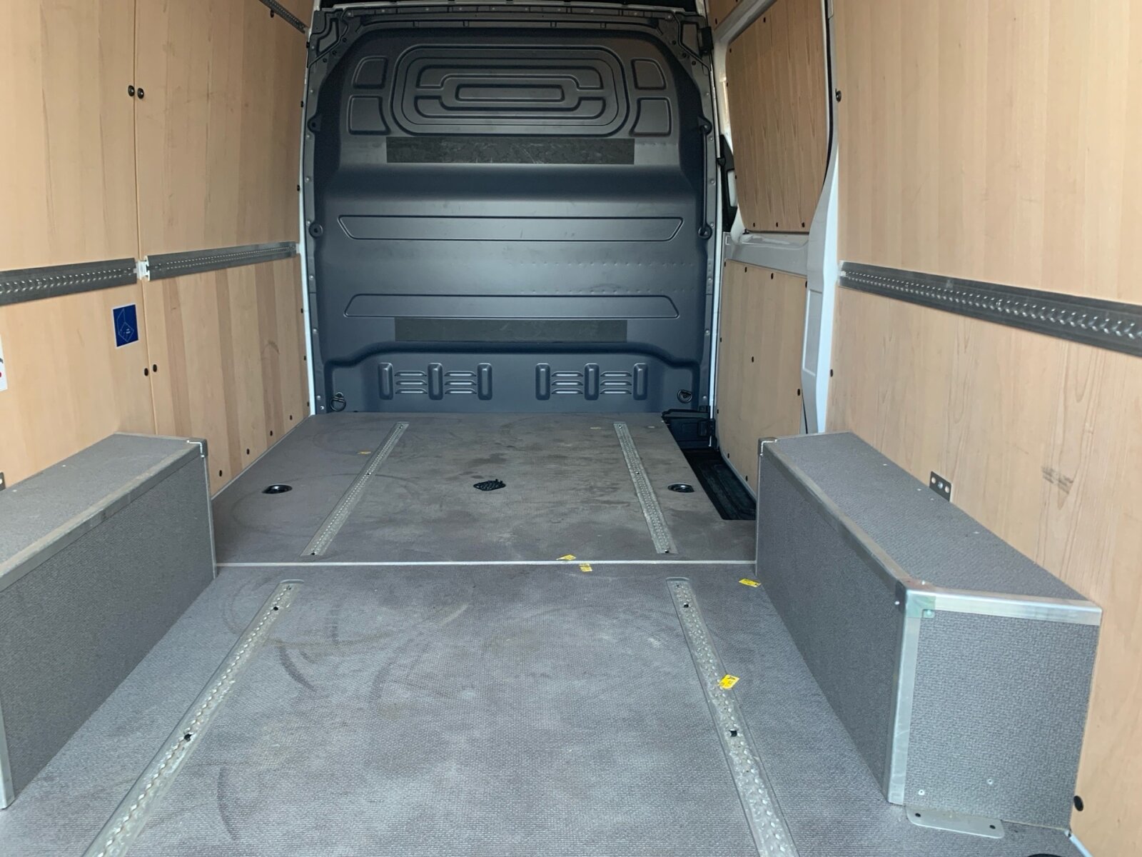 Beifahrersitz Zweisitzer: Deckenleuchte(n) LD-/FG-Raum mit Türkontakt, ECE-Ausführung, Einstieggriff an Ecksäule hinten rechts, Fahrersitzkasten, niedrig, Haltegriffe für Einstieg Fahrer und Beifahrer, Holzfußboden, Innenverkleidung Laderaum bis Dachhöhe (Holz), Klappdeckel für Ablagefach, Laderaumbeleuchtung über Bewegungsmelder, Lastenverankerungsschienensystem, Leitungskanal an Seitenwand, Linkslenker, Radkasten beladbar,