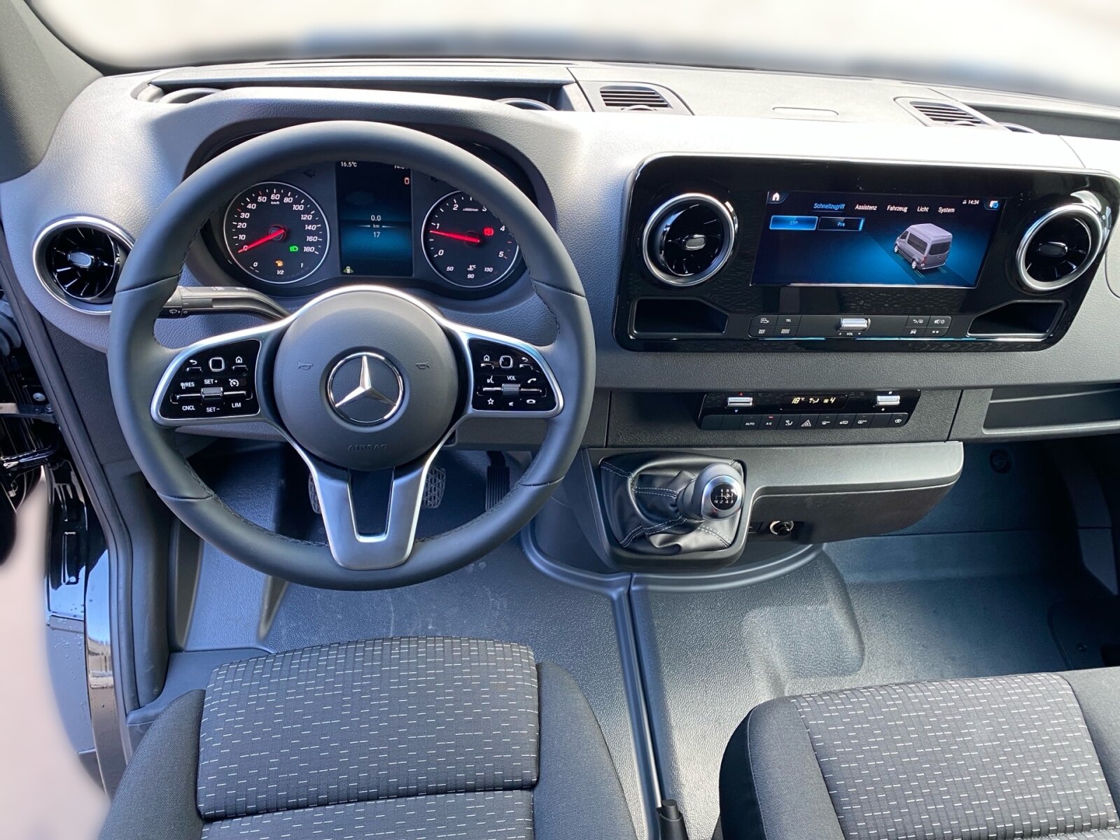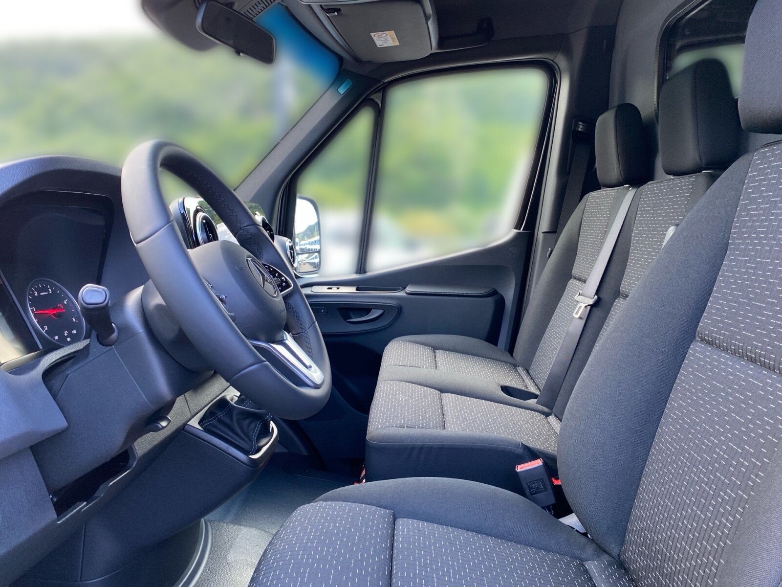 Sitzheizung für Fahrer: Stoff Caluma schwarz, Tachometer km/h, Trennwand durchgehend mit 1 Fenster, Verkleidung Laderaum bis Brüstungsgurt einfach,