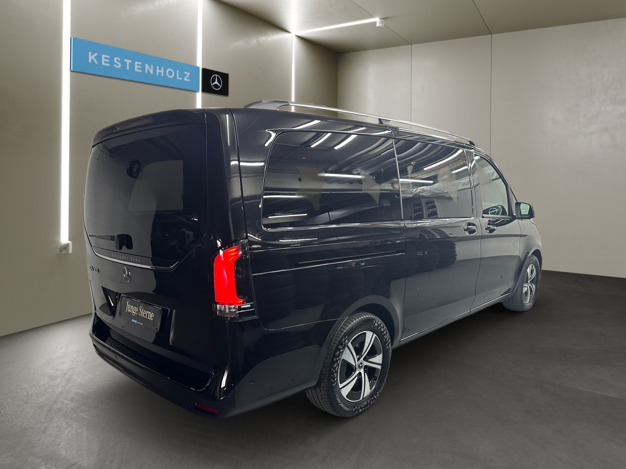 Exterieur: Luftfederung, Touchscreen Bedienung, Leichtmetallfelgen 17 Zoll, Außenspiegel elekt. verstell- & anklappbar, beheizt, Dachreling, Schiebetür links u. rechts elektrisch, Notrufsystem, Geschwindigkeitsbegrenzer: 140 km/h, Ladekabel Mode 3 (Typ 2/2), Wechsel-/Gleichstromladesystem (AC/DC Laden): AC Laden 11 kW / DC Laden 110 kW