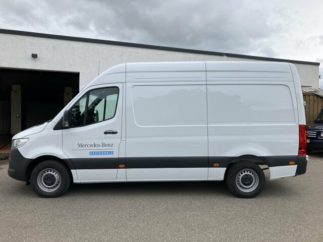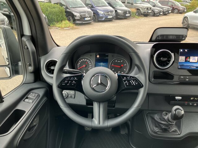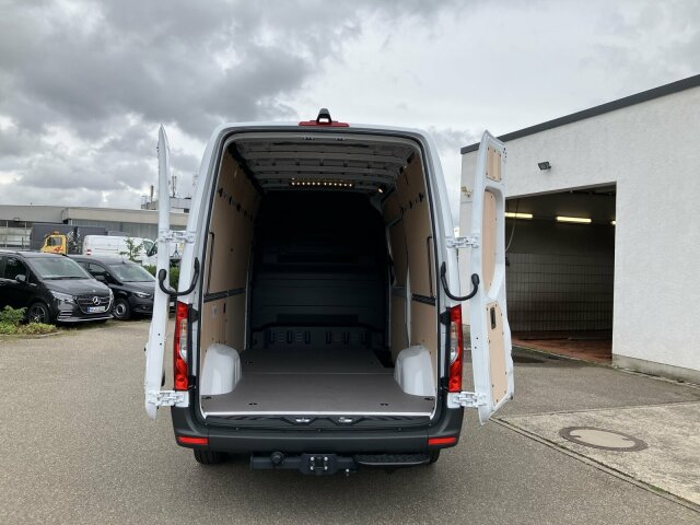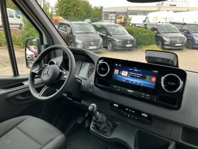 Exterieur: 3,5 Tonner, 6-Gang-Schaltgetriebe ECO Gear, Anhängerkupplung, für erhöhte Anhängelast 3,5 t, Anhängersteckdose 13-Polig, Außenspiegel elektrisch heranklappbar, Außenspiegel heizbar und elektrisch verstellbar, Baureihe C907 / C910 Sprinter, Baureihe C907 VS30 RWD, Bereifung 235/65 R16 C, Dritte Bremsleuchte, Einstieggriff an Ecksäule hinten links, Generator 14 V / 250 A, Geräuschmaßnahmen, Haltegriff Einstieg Laderaumschiebetür an Trennw., Haupttank 71 Liter, Hecktüren, zweiflügelig, Öffnung bis Seitenwand, Hochdach, Inland - Code, Kastenwagen, Komplettfahrzeug, Leitungskanal an Heckportal, Länderausführung EU - EFTA - UK, Längsträgerverstärkung, Premium Komplettradschutz (3 Jahre), Querträger mit integriertem Auftritt, Radstand 3665 mm, Rohbaumaßnahmen zusätzlich, Schiebetür rechts, Seitliche Markierungsleuchten, Steuercode Umstellung WLTP, Steuercode Vertrieb, Steuercode Werk 065, Steuercode Werk 155, Vliesbatterie 12 V 92 Ah, Vorderachse mit erhöhter Traglast, Wegfall Parklicht, Wärmed. Glas mit Bandfilter an der Frontscheibe