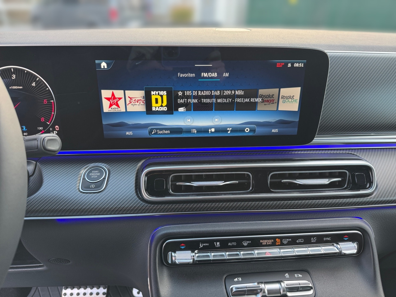 Audio & Kommunikation: MBUX, Navigationssystem, Radio, Digitaler Radioempfang DAB+, zentrale Bedieneinheit: Touchpad, Burmester Surround-Soundsystem, AUX & USB Anschluss, Handyvorbereitung Bluetooth, Smartphone-App Integration, Kabelloses Laden für Handys, WLAN Hotspot