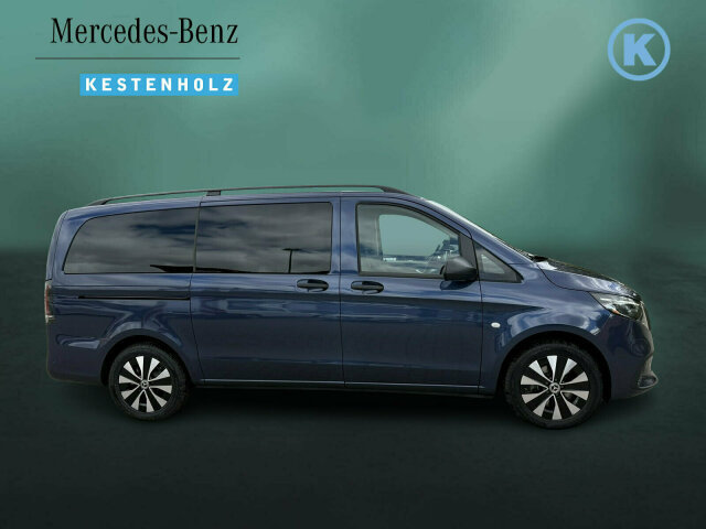 Exterieur: Aktiver Feststeller Schiebetür, Anhängerkupplung Kugelkopf abnehmbar, Außenspiegel elektrisch heranklappbar, Außenspiegel heizbar und elektrisch verstellbar, Basisfahrwerk Plus, Baureihe C447 Vito/V-Klasse, CO2-optimierte Bremsanlage, Dachreling, Dachverkleidung, EASY PACK Paket - elektr. Schiebetür/Heckklappe, Elektr. Betätigung für Schiebetür links, Elektr. Betätigung für Schiebetür rechts, Fehlbetankungsschutz, Fenster in Heckklappe mit Wisch- und Waschanlage, Fenster vorn links, fest in Seitenwand/Schiebetür, Generator 14 V / 250 A, Gewichtsvariante 3.100 kg, Haupttank 70 Liter, Heizung für Scheibenwaschanlage, Hinterachswellenfabrikat IFA, Inland - Code, Kombifahrzeug, Komplettfahrzeug, Kältemittel R-1234yf, Leichtmetallräder 7,0Jx17 5-Doppelspeich.-Design, Metallic-Lack, Multibeam LED: Fernlichtassistent Adaptive plus, Premium Komplettradschutz (3 Jahre), Radstand 3200 mm, Überhang lang, Reifenfabrikat Hankook, Räderfabrikat Ronal, Schiebetür links, Schluss-, Brems- und Blinklicht in LED-Technik, Steuercode Umstellung WLTP, Steuercode Zertifizierung II, Stoßfänger und Anbauteile in Wagenfarbe lackiert, Vliesbatterie 12 V 92 Ah, Wärmedämmendes Glas rundum