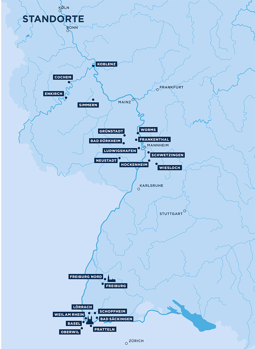 23 Standorte in Deutschland und in der Schweiz.